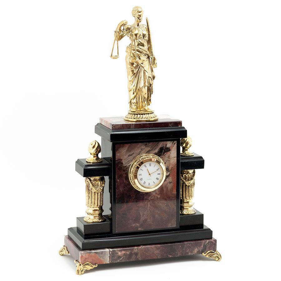 Часы из яшмы и долерита с бронзовым литьем. Изделие прекрасно впишется в интерьер вашего дома и послужит прекрасным подарком к любому празднику.