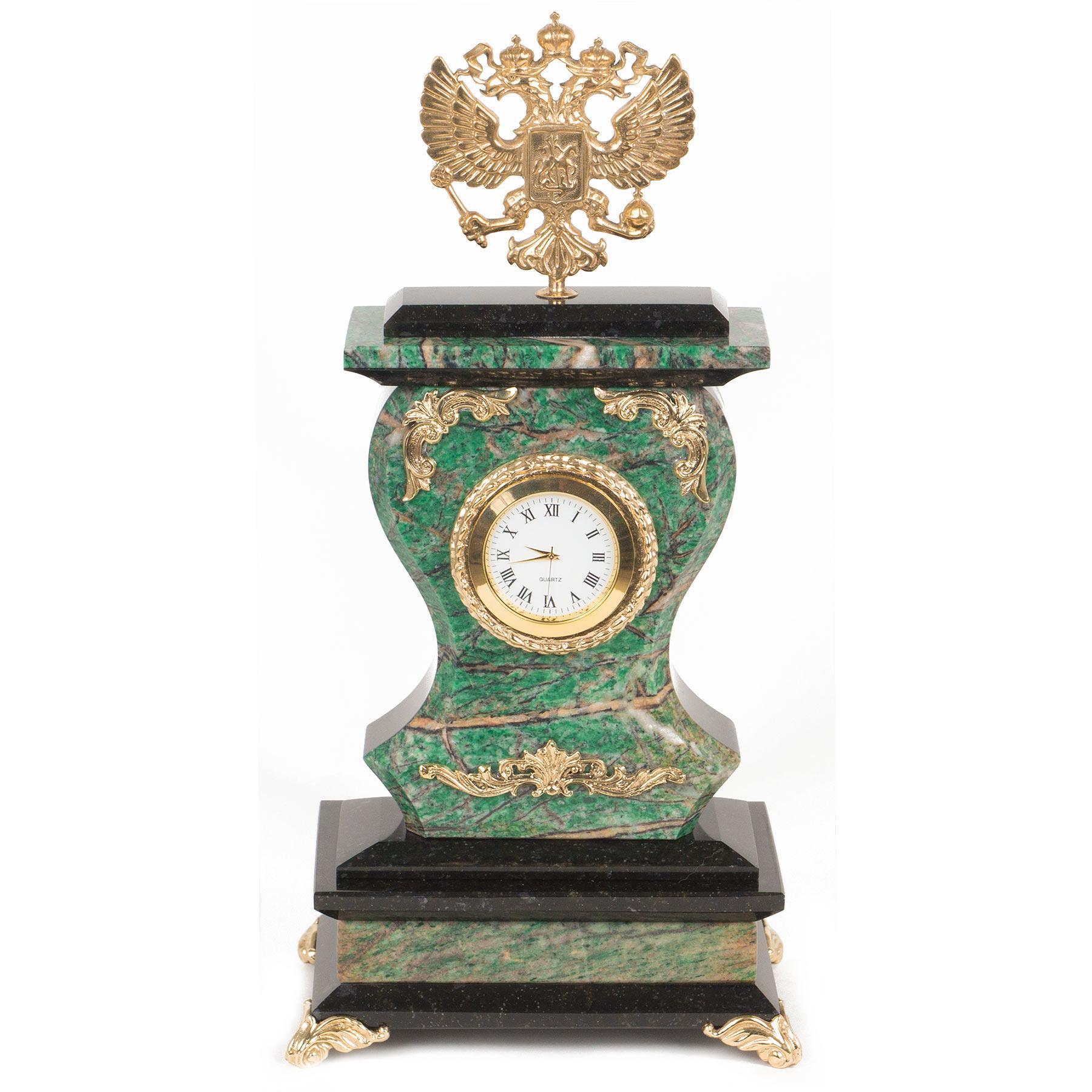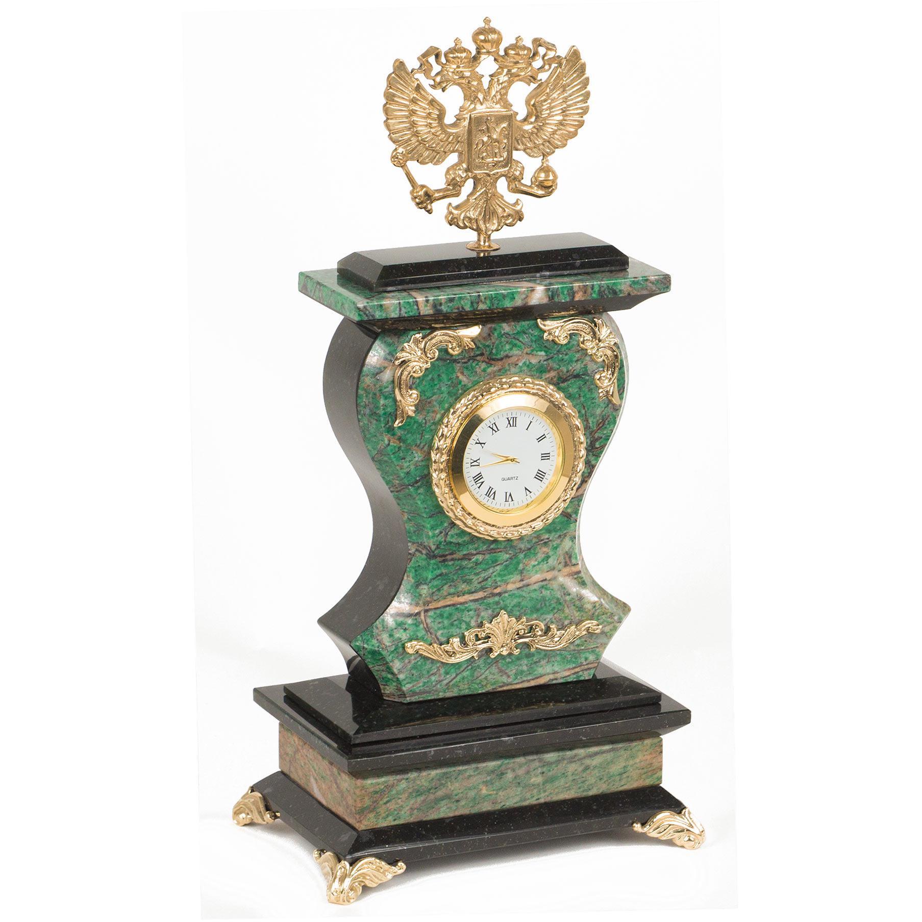 Часы "Герб" березит змеевик бронза. Оформите свой дом таким интерьерным аксессуаром или преподнесите его в качестве презента друзьям,и они оценят ваш оригинальный вкус и неординарность подарка.