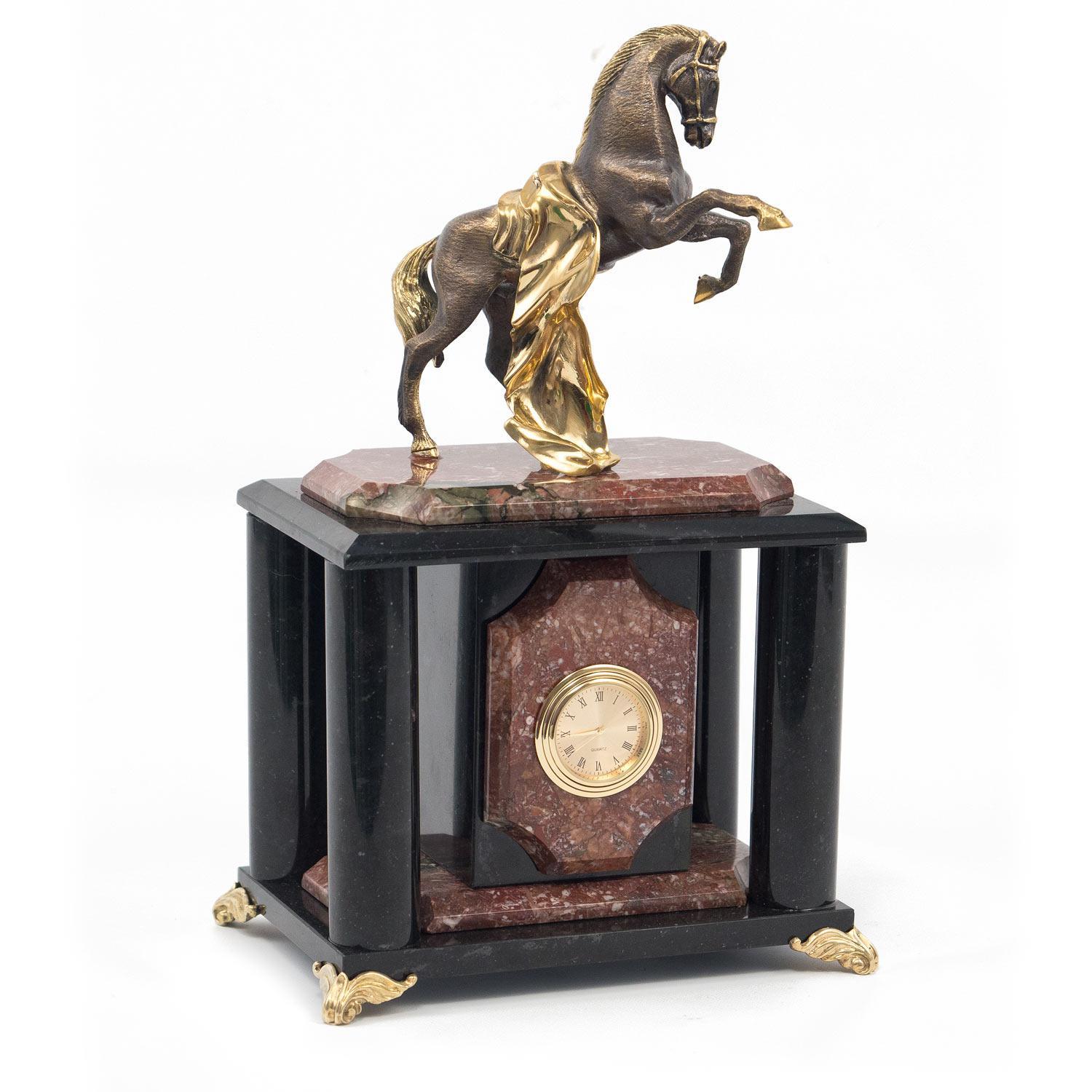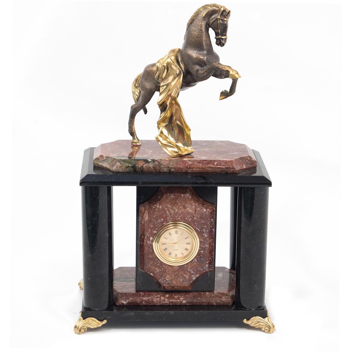 Часы из креноида и змеевика с бронзовым конем. Этот товар непременно порадует вас своим высоким качеством и, как следствие, долговечностью.
