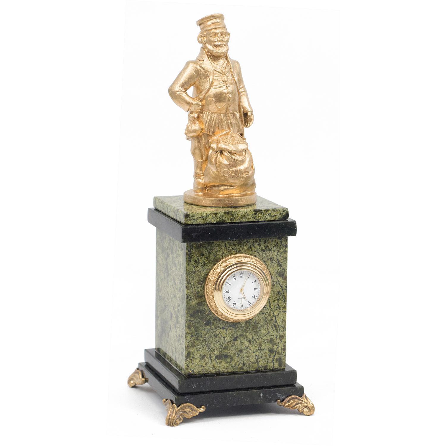 Корпус часов из змеевика, статуэтка из скульптурного гипса. Это оригинальный подарок, который останется на долгую память, и будет храниться на видном месте.