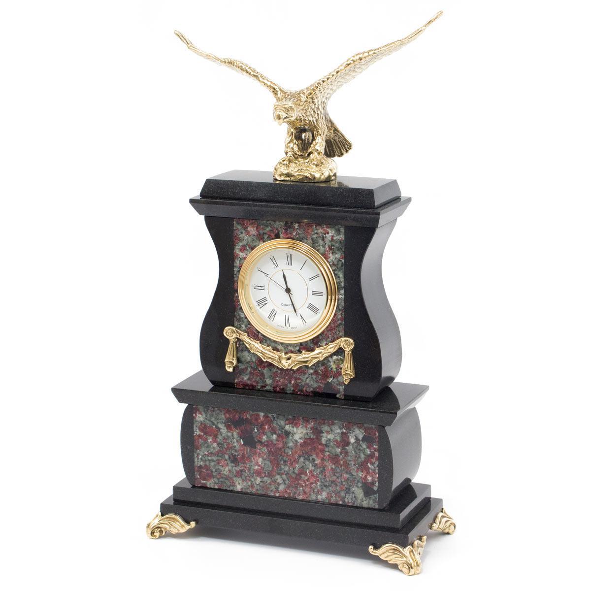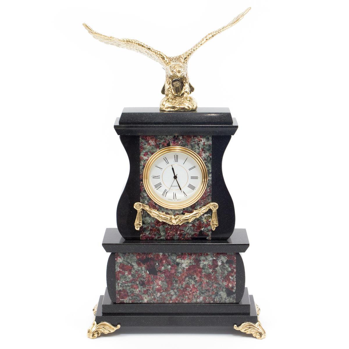 Часы из эвдилиата и долерита с бронзовым орлом. Неординарный и практичный подарок на любое празднование.