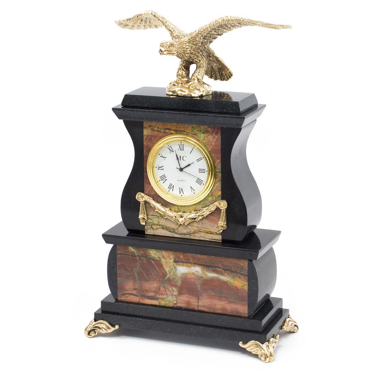 Часы из яшмы и долерита с бронзовым орлом. Оформите свой дом таким интерьерным аксессуаром или преподнесите его в качестве презента друзьям,и они оценят ваш оригинальный вкус и неординарность подарка.