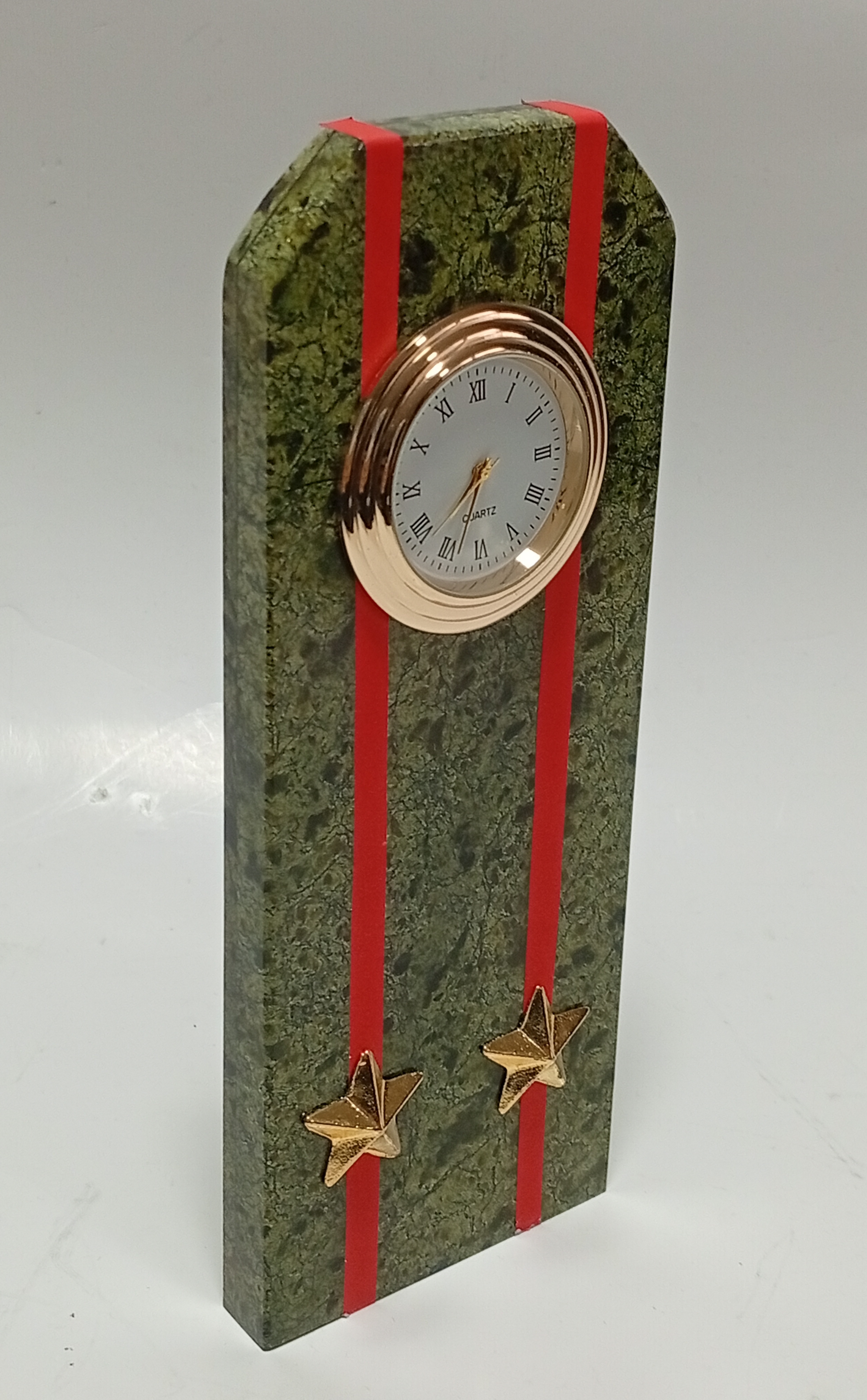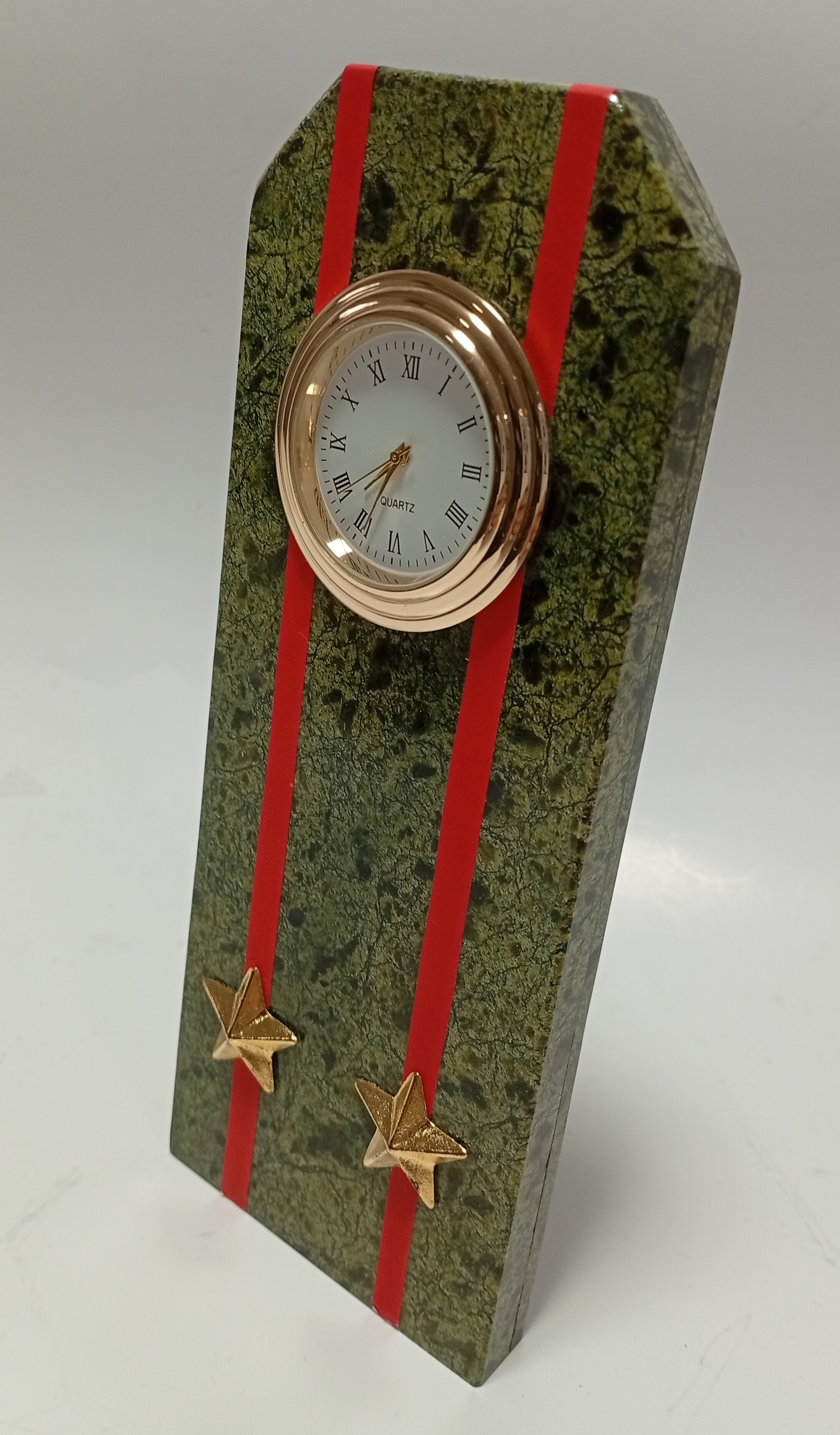 Часы-погон из натурального змеевика с кварцевым механизмом.