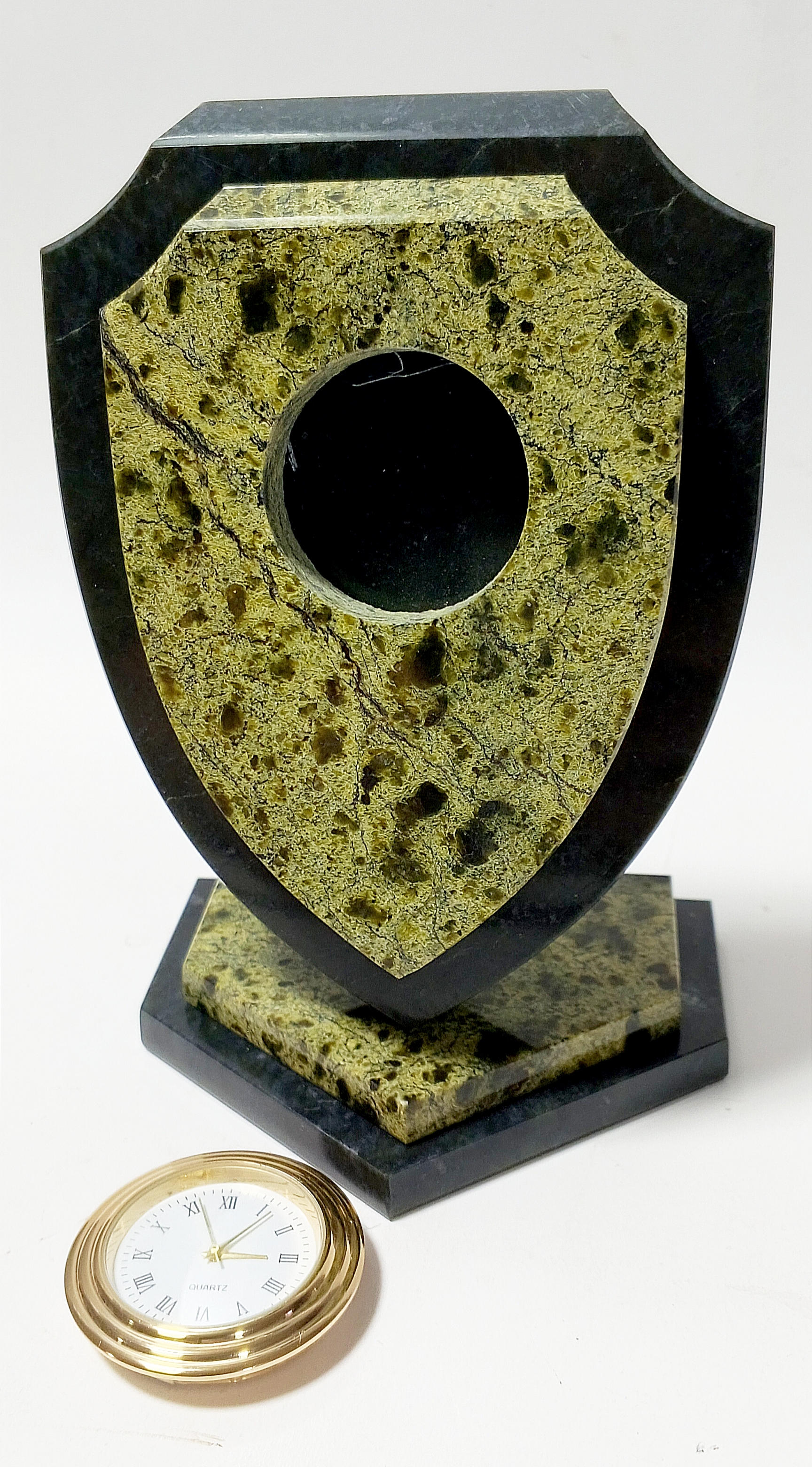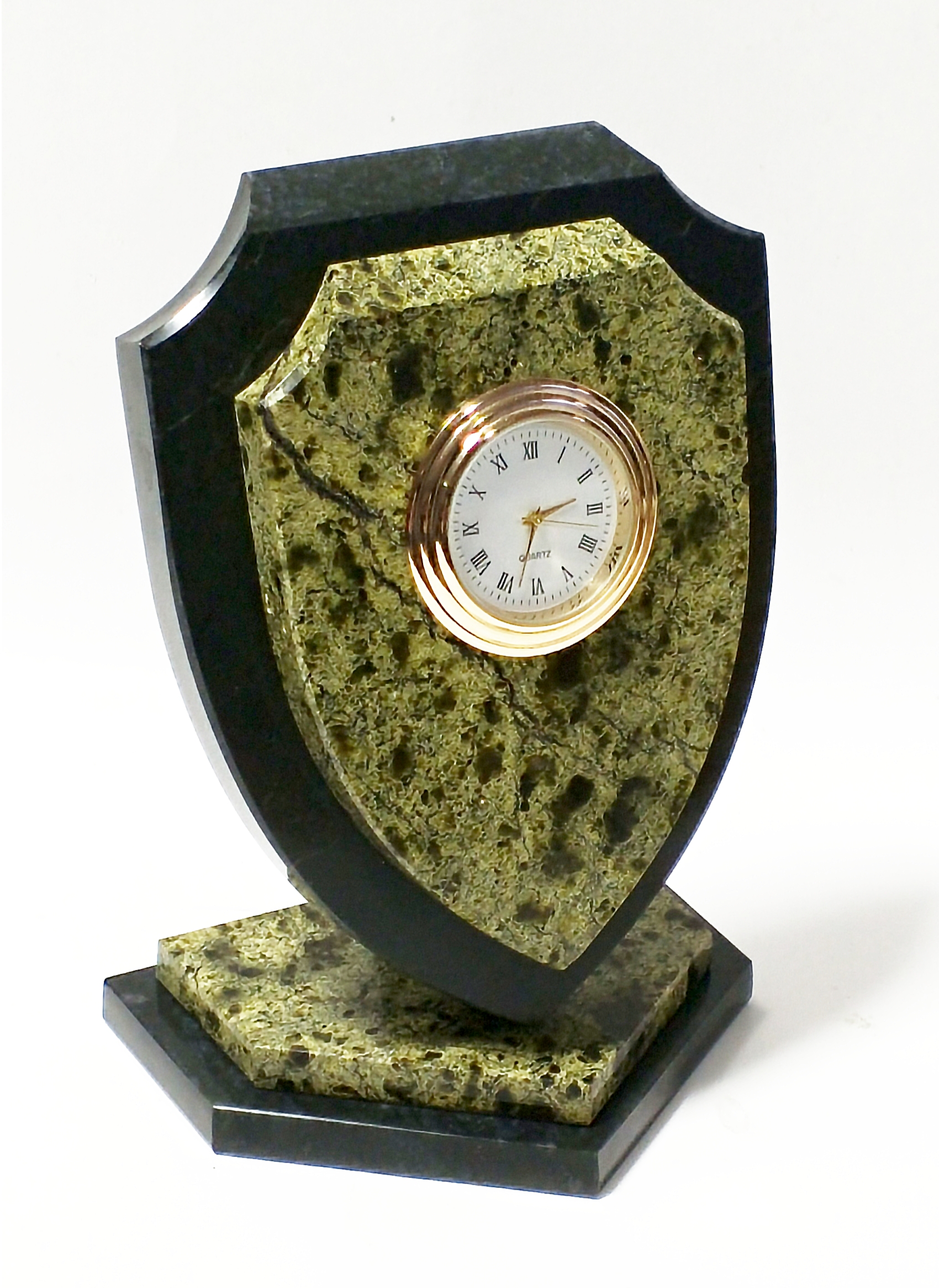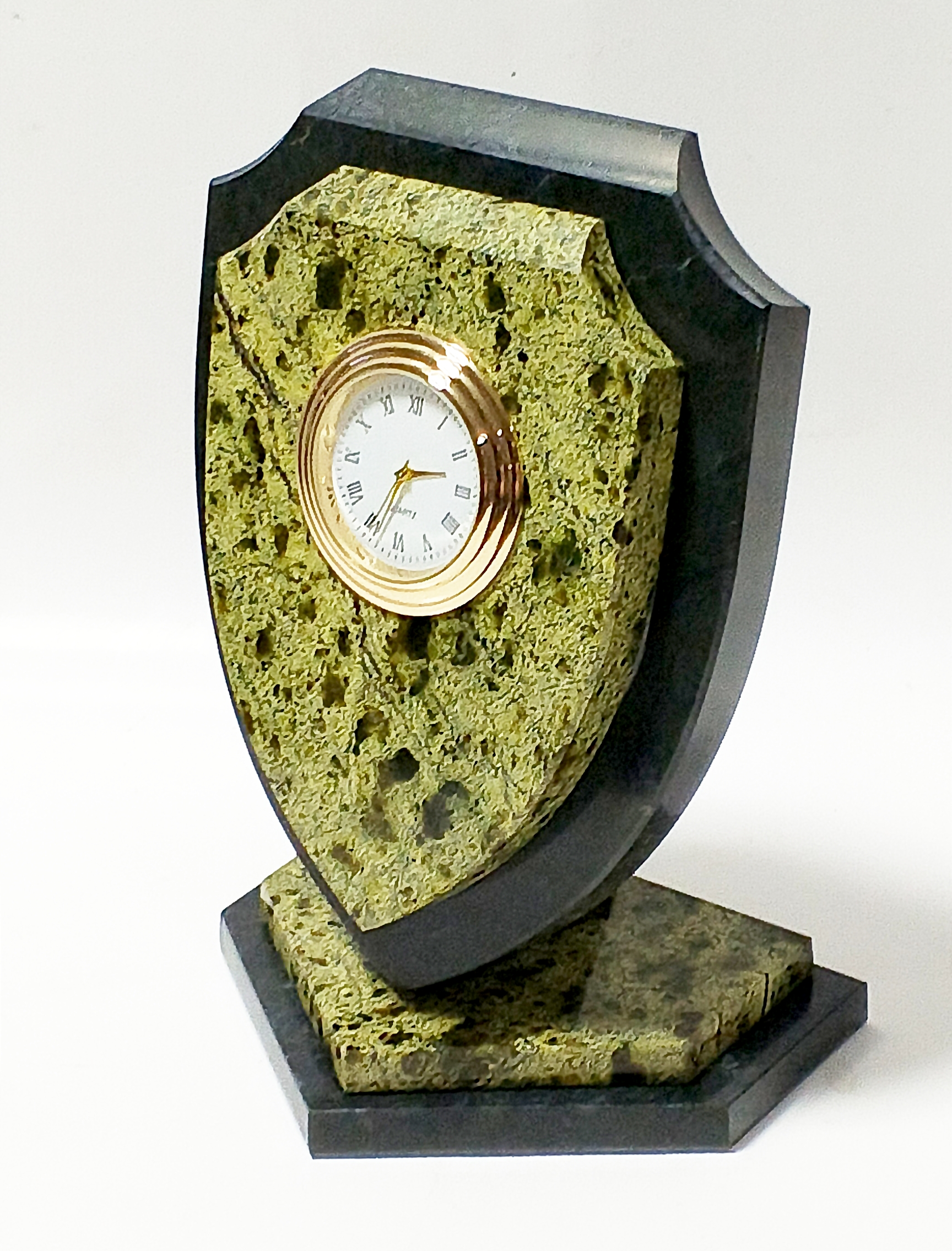 Часы изготовлены из натурального змеевика , механизм часов кварцевый.