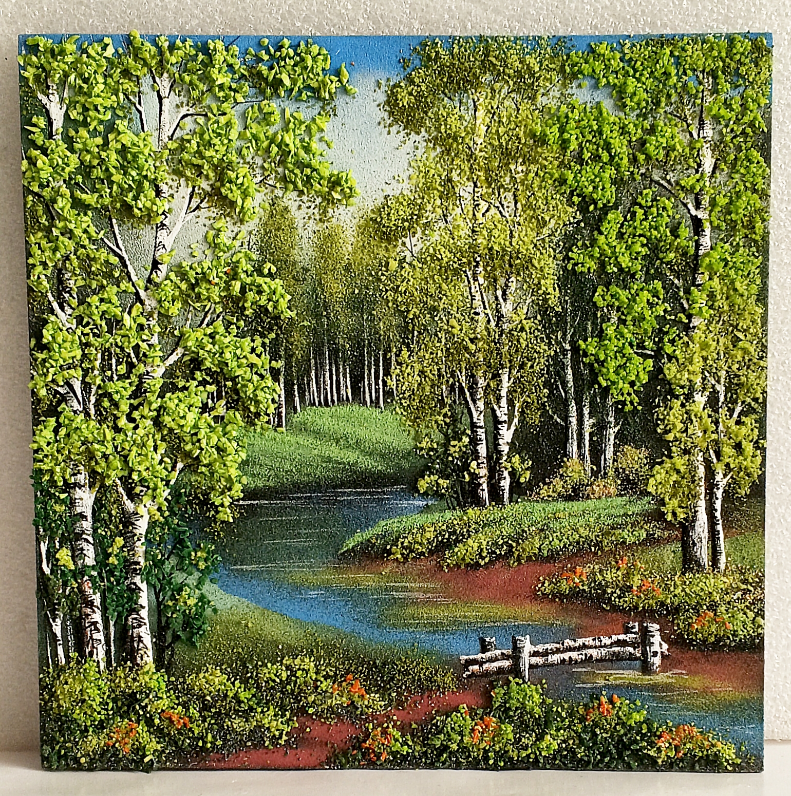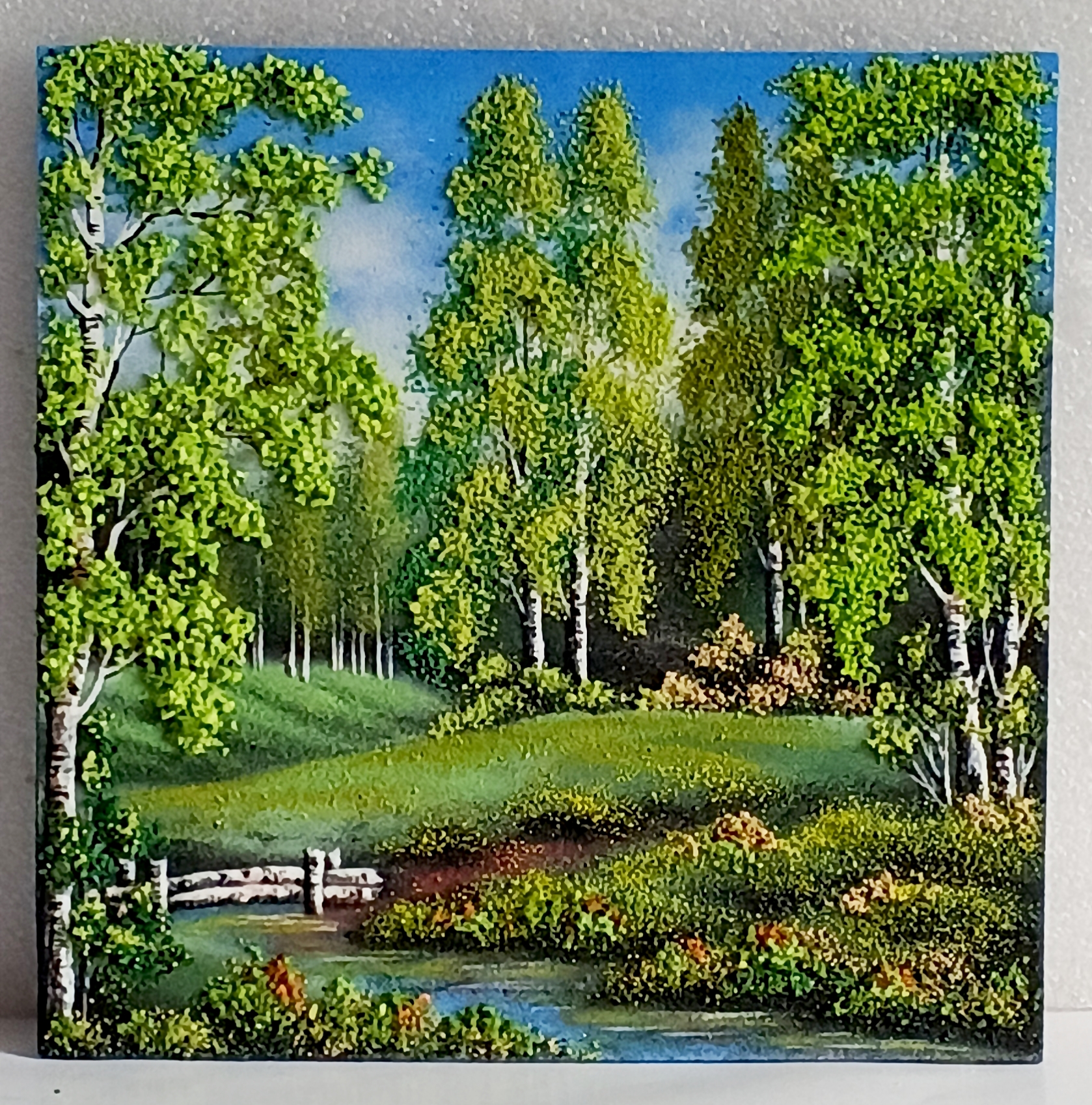 Декобокс " Березовый мостик" рисованный камнем 30-30см