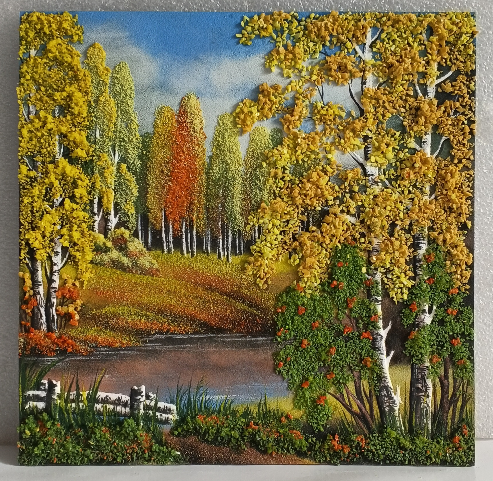 Декобокс" Осенний пейзаж" рисованный камнем 30-30см