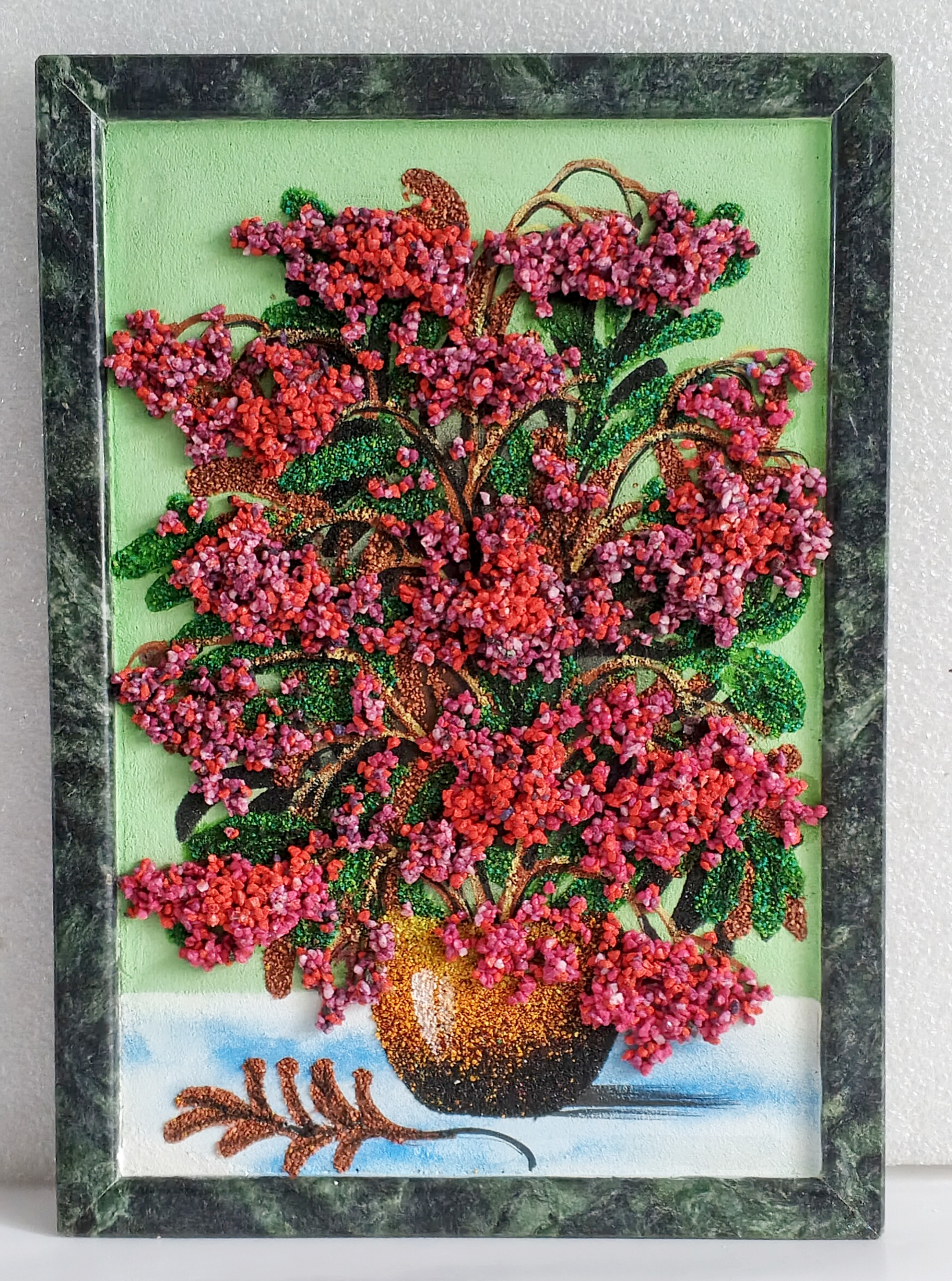 Каменное панно изготовлено вручную натуральной и тонированной каменной крошкой , рамка из змеевика подложка из мрамора .