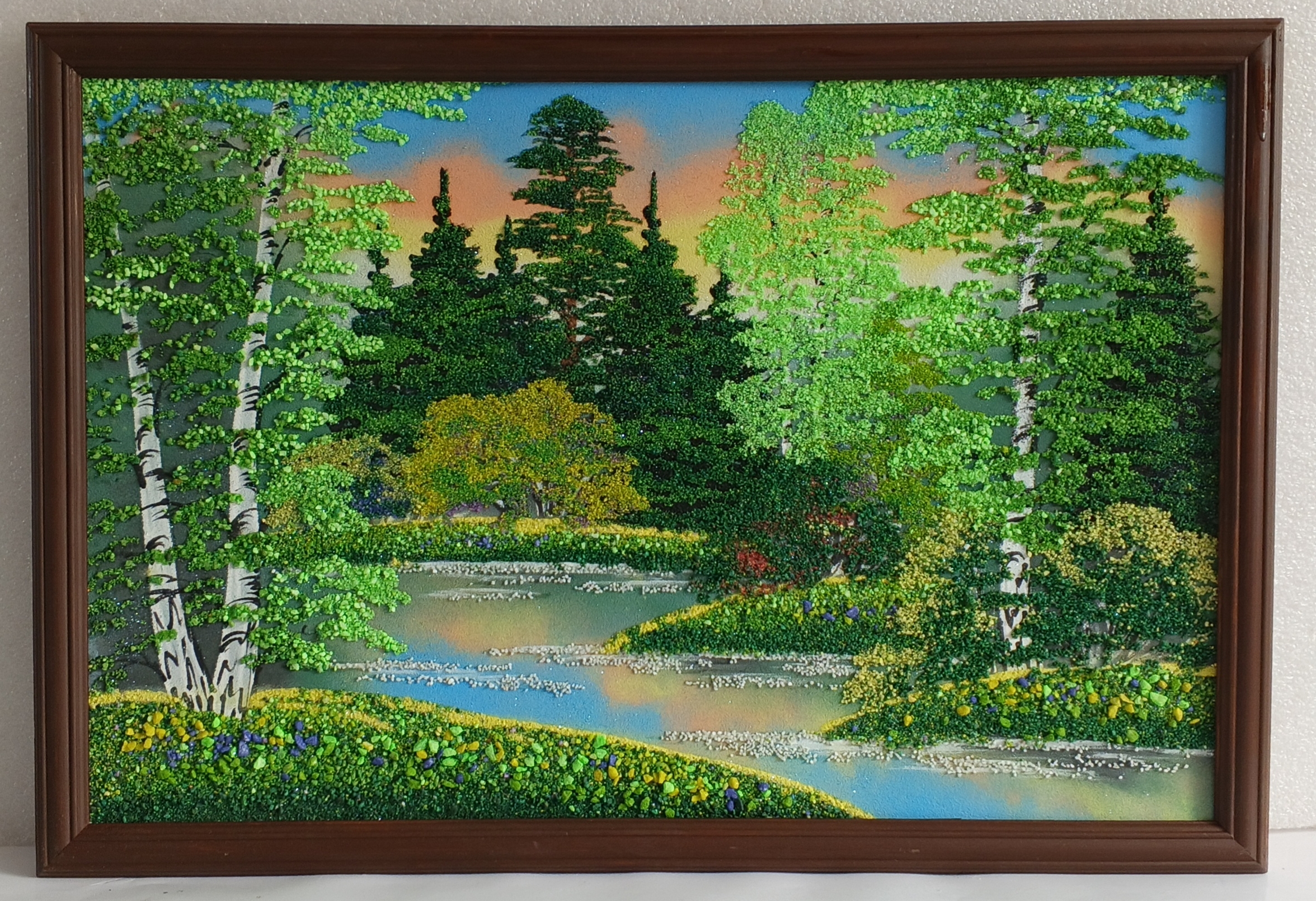 Картина " Летнее утро" рисованная камнем 65-45см