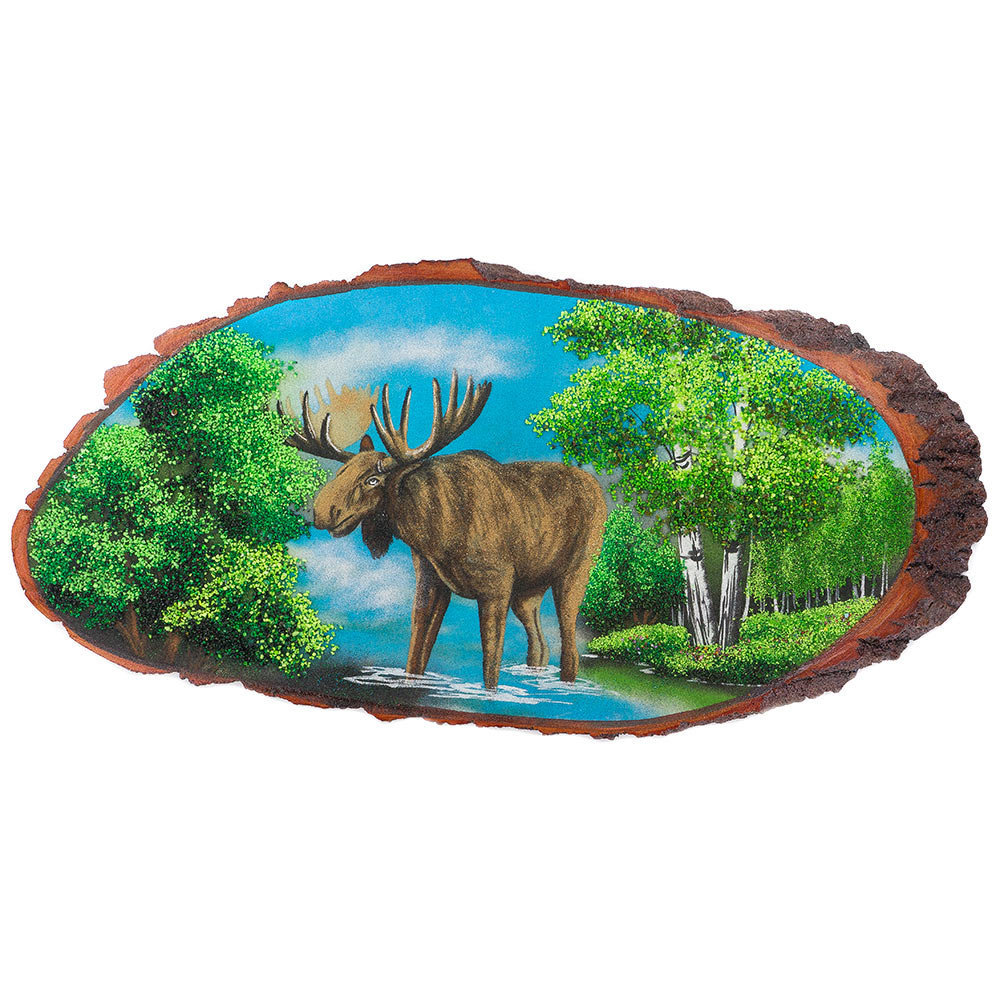 Рисунок выполнен вручную из натуральной и тонированной каменной крошки на спиле дерева, каждая картина имеет индивидуальный оттенок и каменную подсыпку. Отличный предмет интерьера.