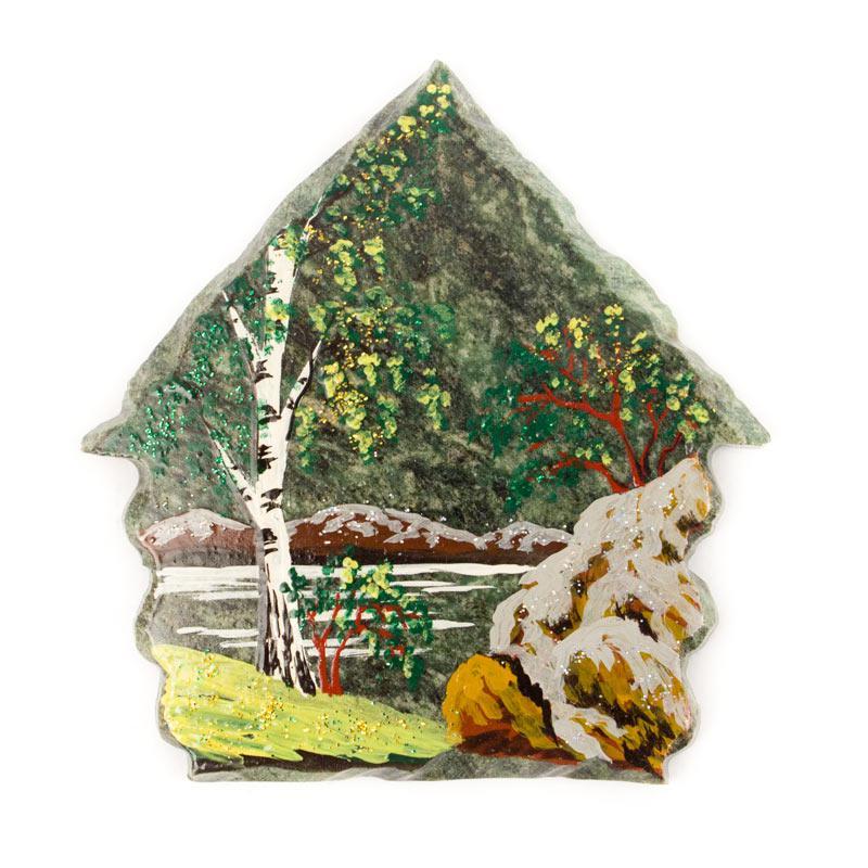Основание изготовлено из змеевика, рисунок выполнен акриловыми красками.Отличный сувенир из камня.