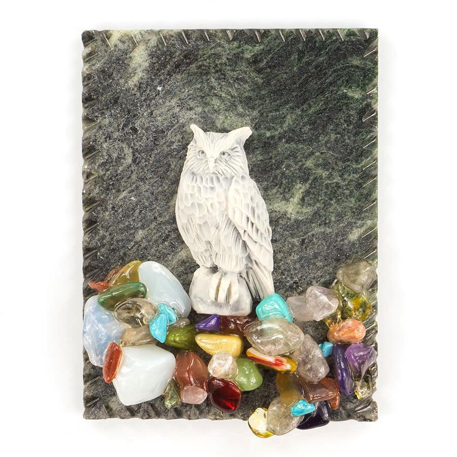 Основание из змеевика, статуэтка из литьевого мрамора с самоцветами из яшмы, аметиста, авантюрина и др. уральских камней.Отличный сувенир из камня.