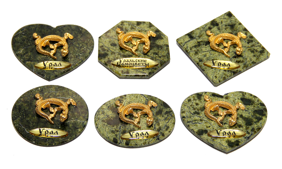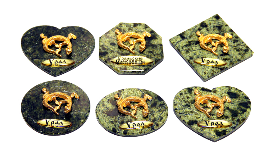Магниты из змеевика "Урал" с ящеркой 6-6 см