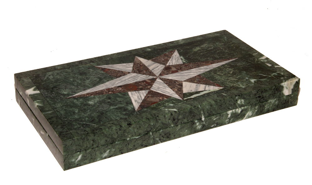 Нарды из камня змеевика, звезда из мрамора и конгломерата изготовлены в ручную.