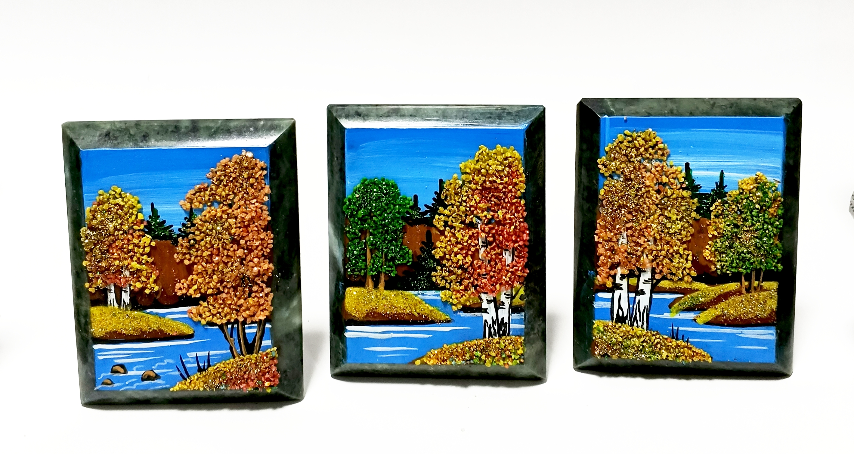 Настольное каменное панно" Времена года" 9-7-3.5см вес 160гр.