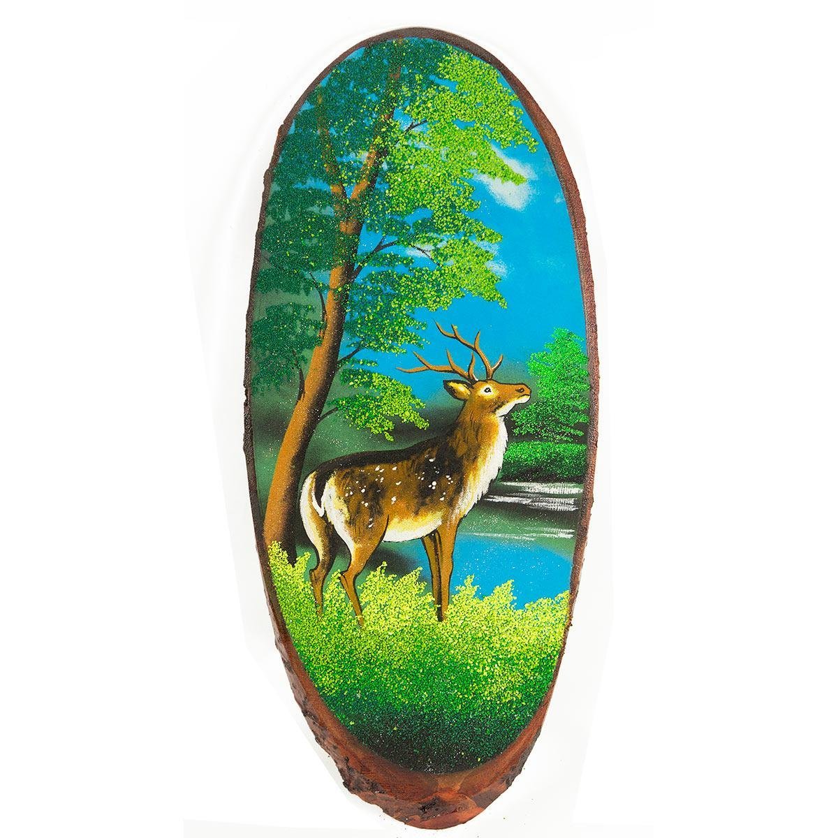 Рисунок выполнен вручную из натуральной и тонированной каменной крошки на спиле дерева, рисунки в ассортименте. Оригинальное решение для интерьера.