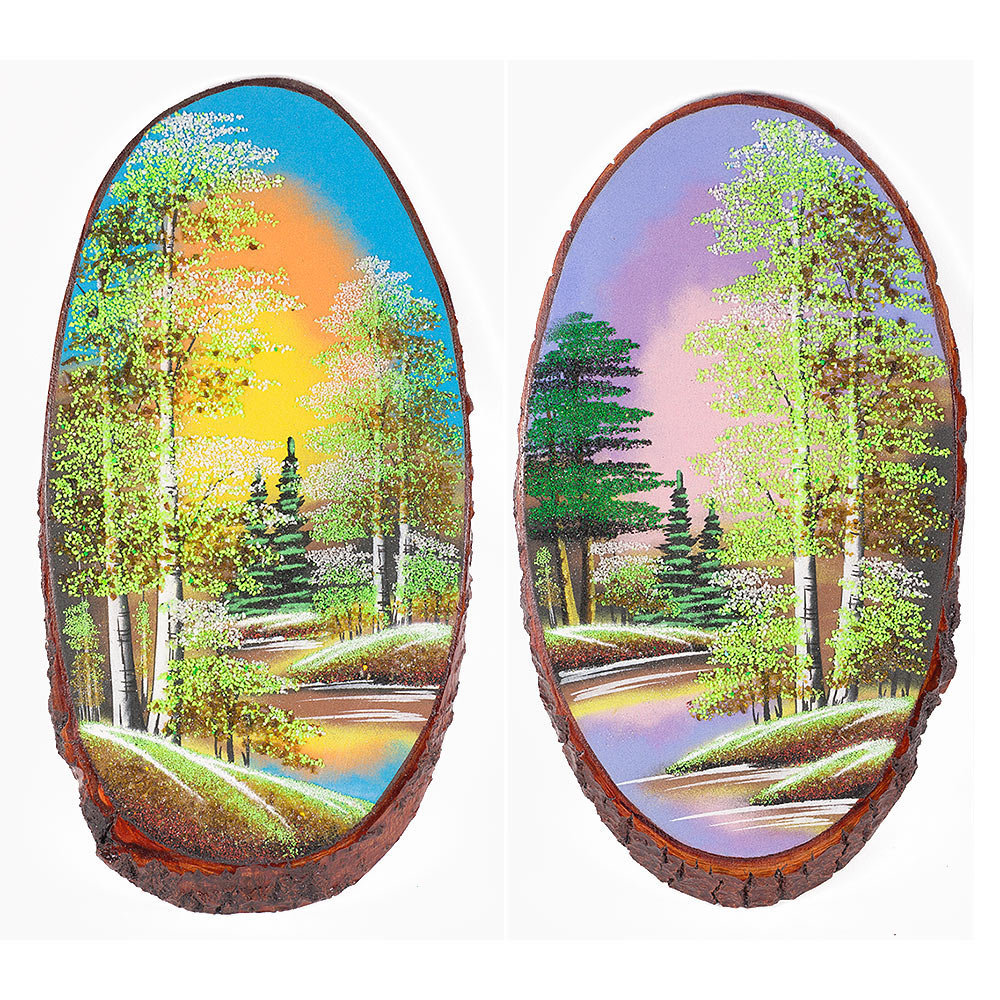 Рисунок выполнен вручную из натуральной и тонированной каменной крошки на спиле дерева, рисунки в ассортименте. Цена за 1 штуку. Неординарный и практичный подарок на любое празднование.