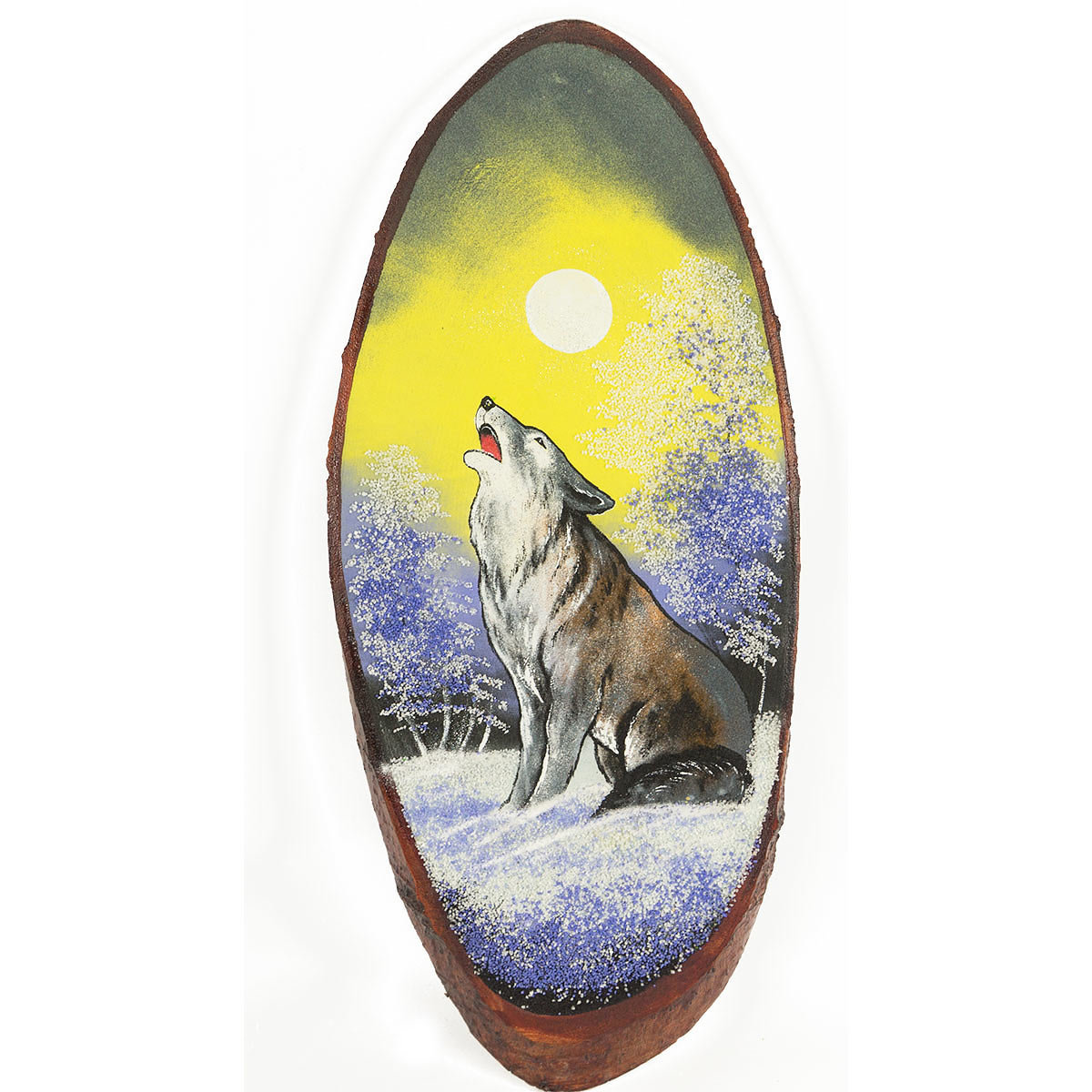 Панно на срезе дерева "Воющий волк" вертикальное 75-80 см R112594