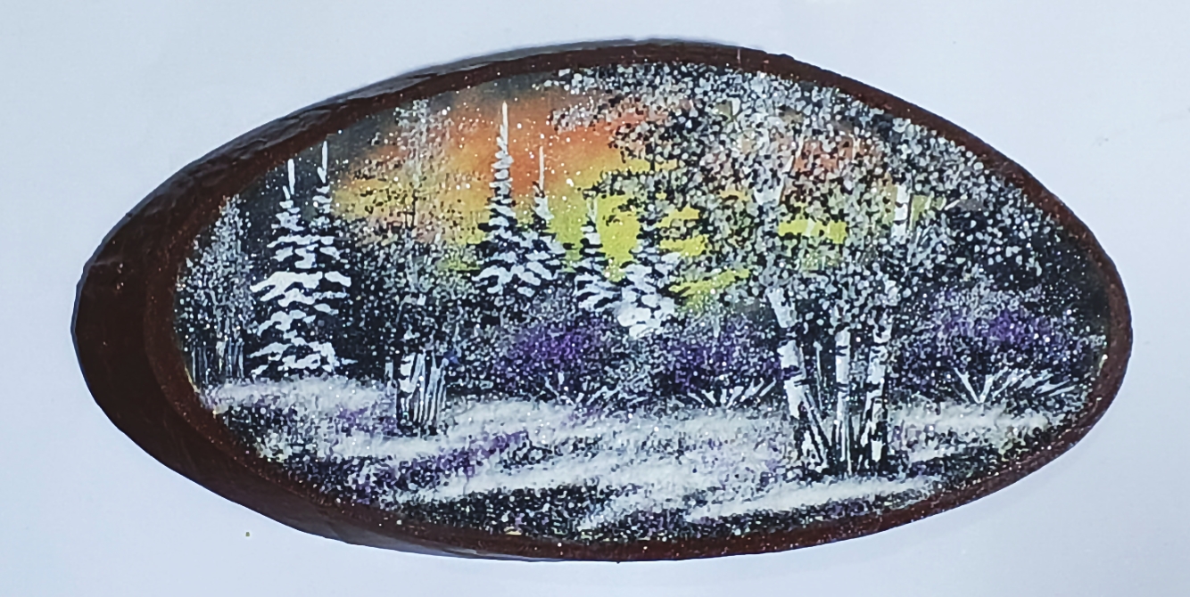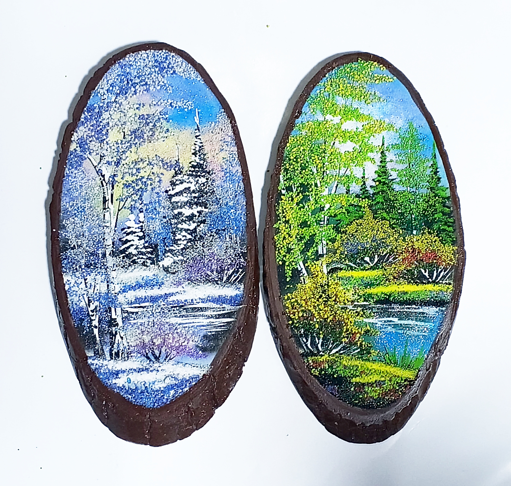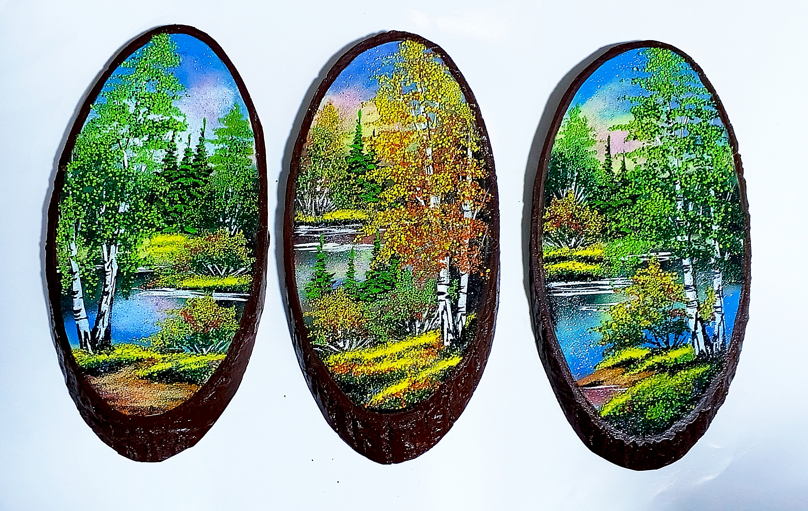 Панно на срезе дерева (осина) с рисунком натуральной каменной крошкой, размер 41-21-2см