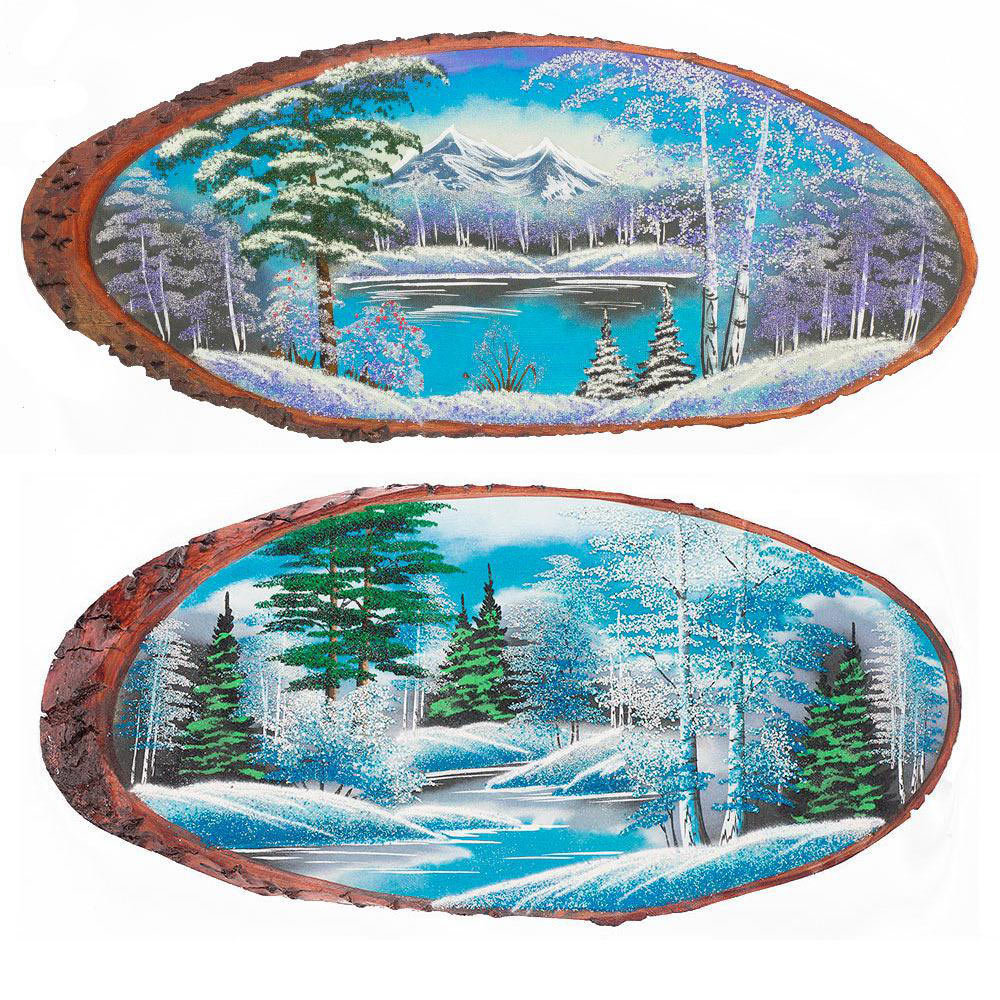 Рисунок выполнен вручную из натуральной и тонированной каменной крошки на спиле дерева, рисунки в ассортименте. Цена за 1 штуку. Оригинальное решение для интерьера.