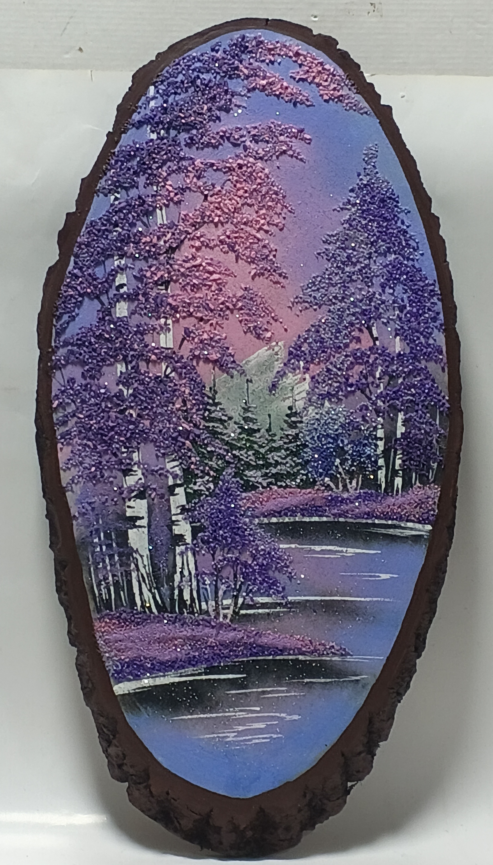 Панно на срезе дерева " Зимняя ночь " 50-23.5см