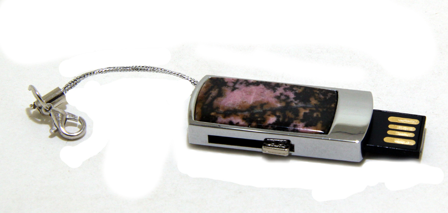 Подарочная USB флеш карта на 64GB с накладкой камня родонита, в подарочной упаковке,