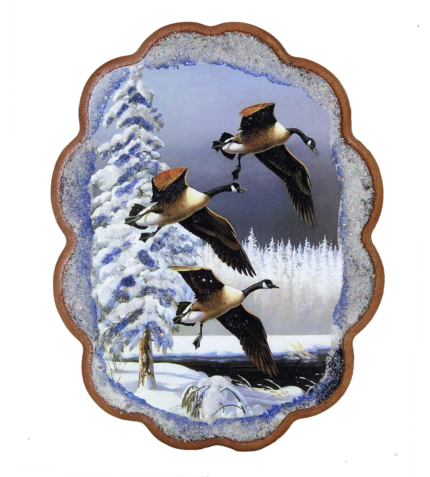 Репродукция на ажурном панно с подсыпкой уральскими минералами №3" Три гуся" размер 26-34-1.3см вес 400гр