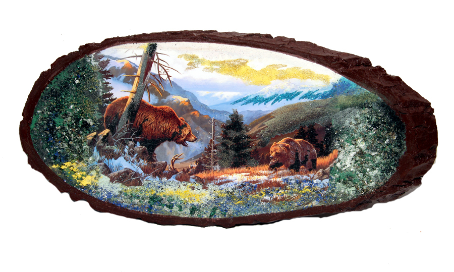 Срез дерева " Незваный гость" 49-23-2.5см вес1.3 кг репродукция с подсыпкой натуральными минералами: малахит, змеевик, кварц, лабрадорит, мрамор изготовлен вручную из осины.