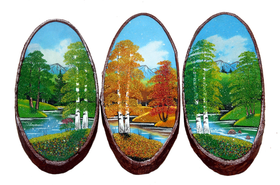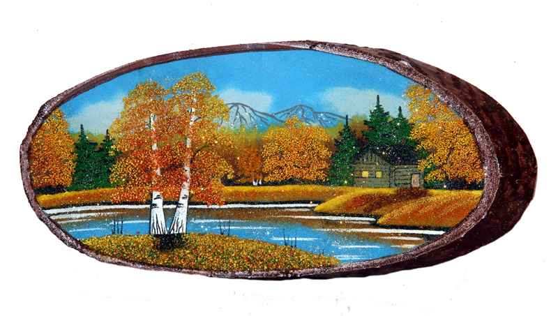Срез дерева из осины с рисунком натуральной и тонированной  каменной крошкой в ассортименте.