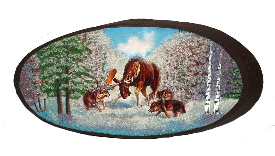 Срез дерева " Поединок" 53-26-3см вес1.5кг репродукция с подсыпкой натуральными и тонированными минералами изготовлен вручную из осины.