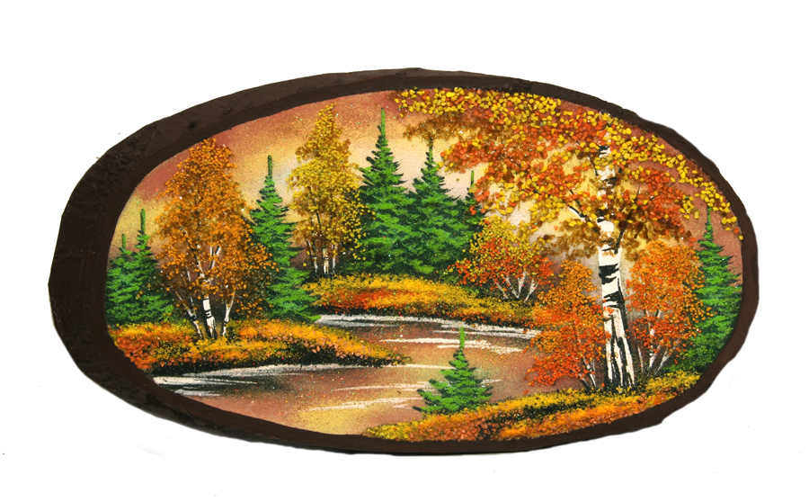 Срез дерева" Янтарная осень" 45-24-2.5см вес 1 кг. репродукция с подсыпкой натуральными и тонированными минералами изготовлен вручную из осины.
