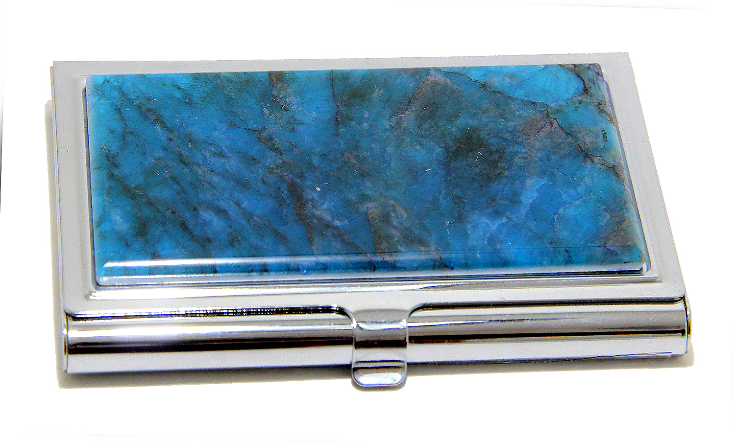 Визитница с накладкой из Апатита. Размеры: 9.3-6-1см , вес 100 гр